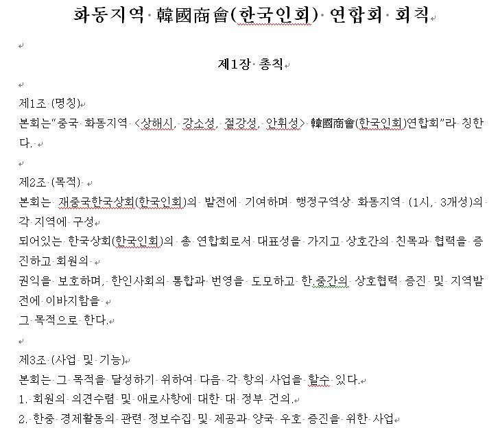 2006년12월20일 화동연합회 설립 창립총회 회칙 회칙 의결, 장소: 중국 상해